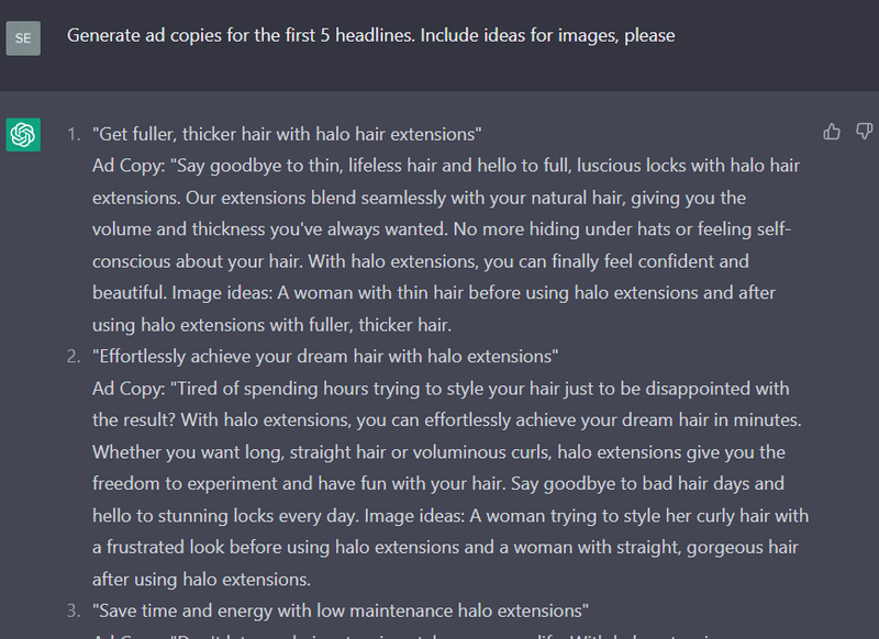 Unsurprisingly, ChatGPT is capable of doing this as well. You can even try to give it character limits depending on the platform you are creating your ad for.