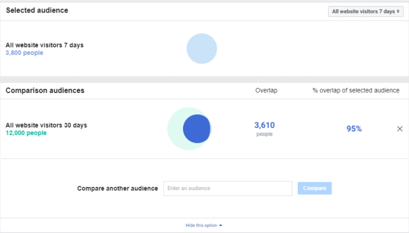 In fact, this can also cause other problems. For example, you would not be able to really test different audiences. When you have an audience overlap, your different ad sets compete between each other and Facebook will choose the audience with the best performance history.