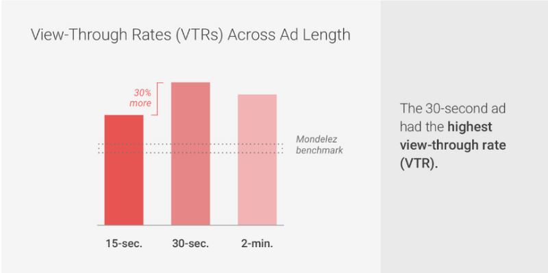 Deliver your most important messages early in the video, in case viewers stop watching before the end. Play rates drop off significantly after 45 seconds.