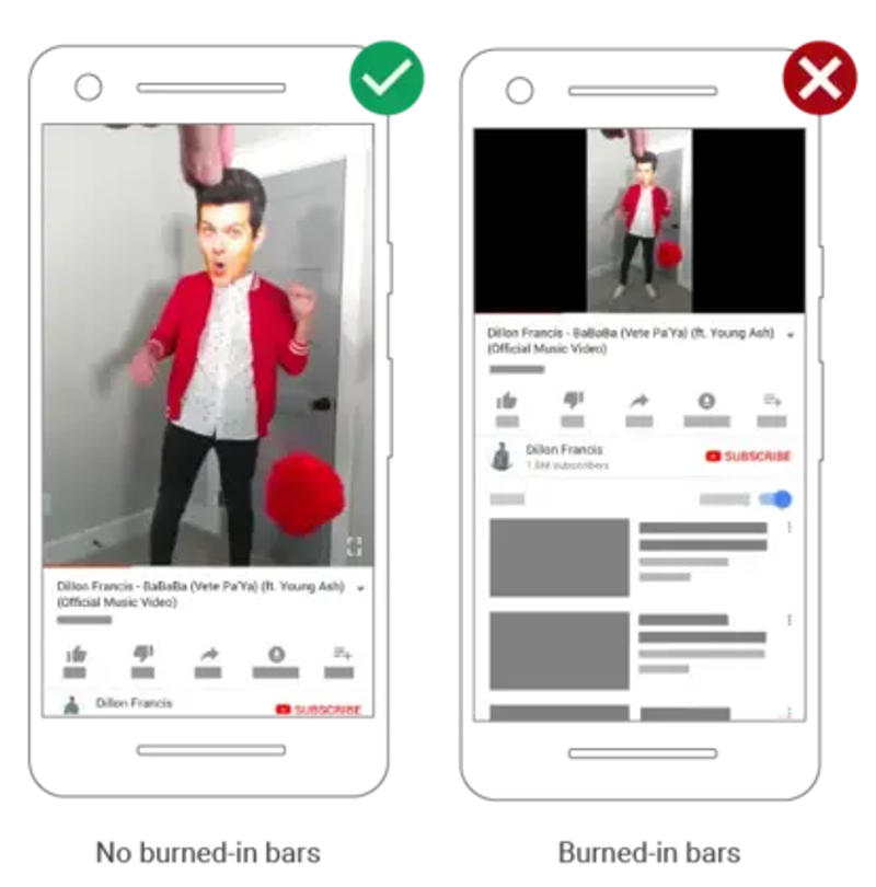 Important: Don’t burn-in bars, as this prevents YouTube from displaying your video in the best way!