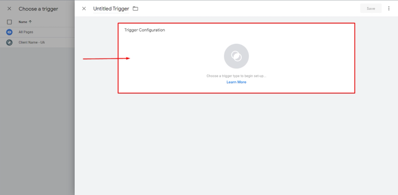 After that, a trigger must be configured, which basically is the condition when this Tag will fire.