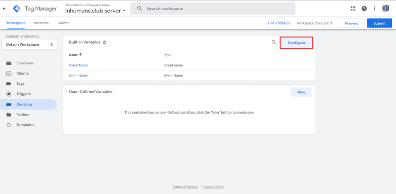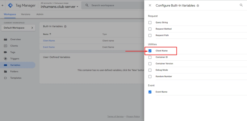 If you go to the Clients section in your GTM account, you will already see two pre-created Clients, so there is no need to create a new Client right here because you are already using it.