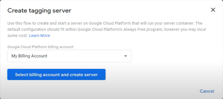 When you create an account, you need to host it somewhere and in this case (see screenshot above) it can be hosted on the Google Cloud Platform. Therefore, you should keep using the automatic provision tagging server.
