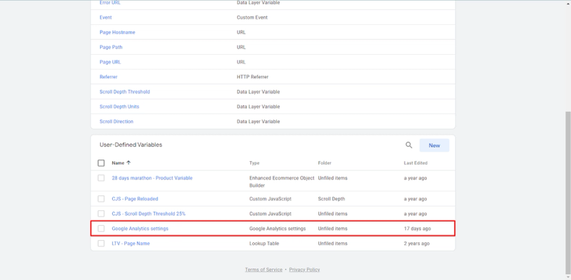 Below, in “Google Analytics” Settings, we should choose the main “Variable”: Google Analytics Settings.