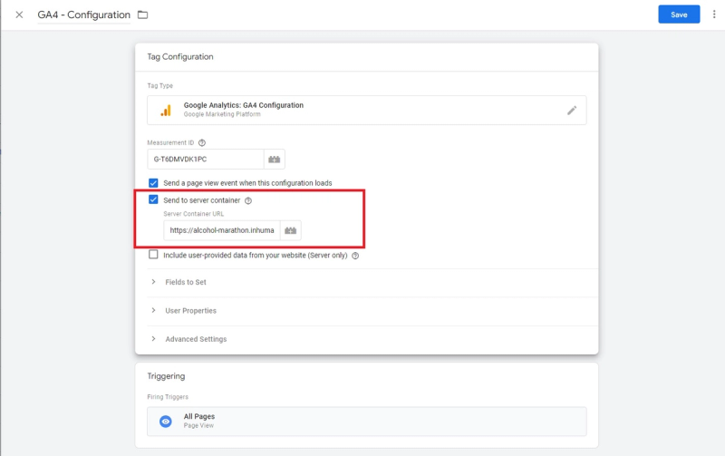 Here, we choose the ID of our GTM Server Account. You can find it on the Homepage in the Server Container.