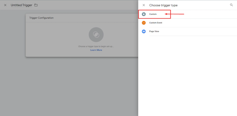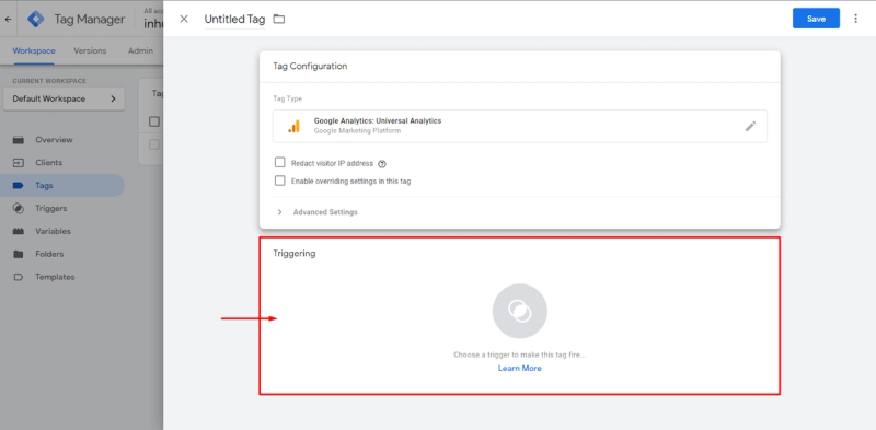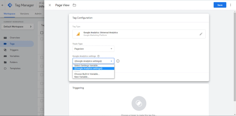 After that, a trigger must be configured, which basically is the condition when this Tag will fire.