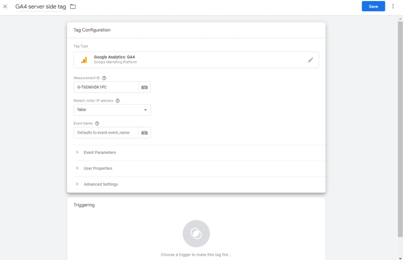 As to the Google Analytics 4 property, you similarly create a corresponding tag in your server container: