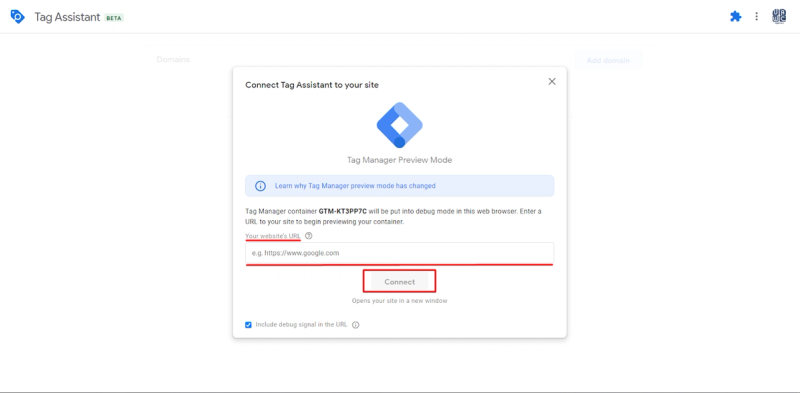 Here you can add your verified Google Cloud Platform domain which was added to the Server Container.