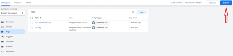 Click Save and both tags are ready to be used. Do not forget to publish your container after these changes.
