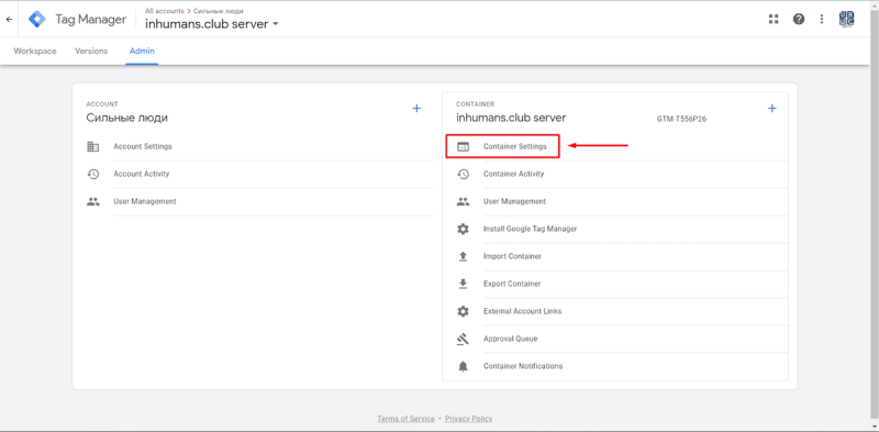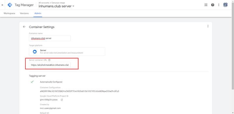 Here, we choose the ID of our GTM Server Account. You can find it on the Homepage in the Server Container.