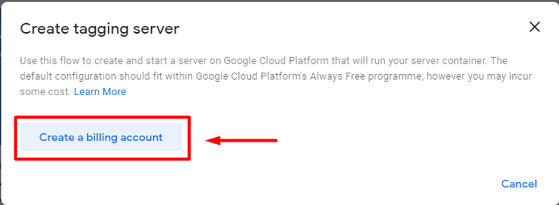 Click on the “Create a billing account” button to create it.