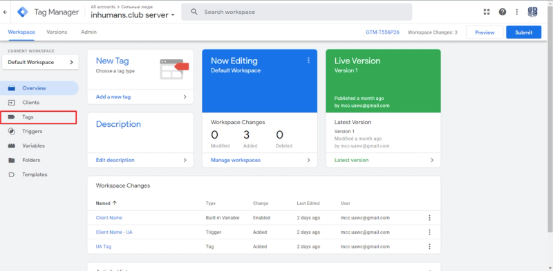 2. After that, you must create a Tag that will send the data that was received by the client, which will be sent further to the Google Analytics server.