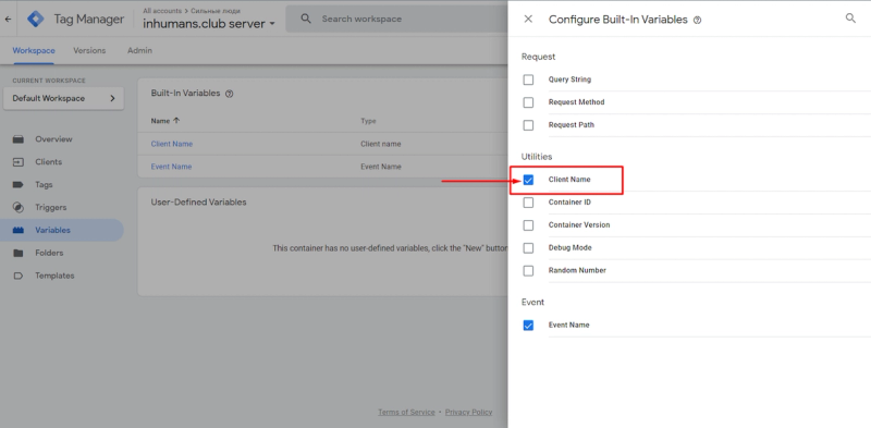 If you go to the Clients section in your GTM account, you will already see two pre-created Clients, so there is no need to create a new Client right here because you are already using it.
