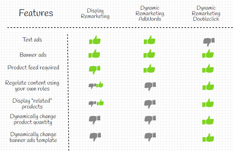 If you need more flexibility you can also take advantage of DoubleClick dynamic remarketing, here is a quick comparison of its capabilities: