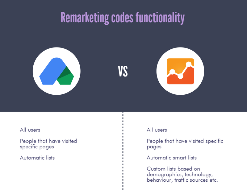 You can also create lists directly in Google Ads using its remarketing code but I would not recommend this approach. Let’s compare Google Analytics and Google Ads functionality: