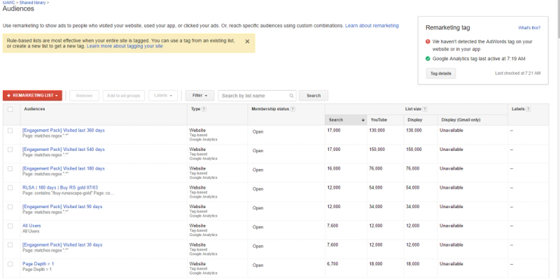 [Engagement Pack] Core Remarketing Lists