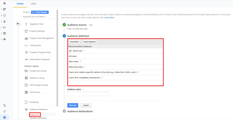 Here are detailed instructions on how you can create different audiences: