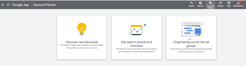 Keyword planner gives you three tool options: “Discover New Keywords”, “Get search volume and forecasts” and “Organize keywords into ad groups”. Those will be enough to build a proper SEO strategy and discover new keywords for your business.