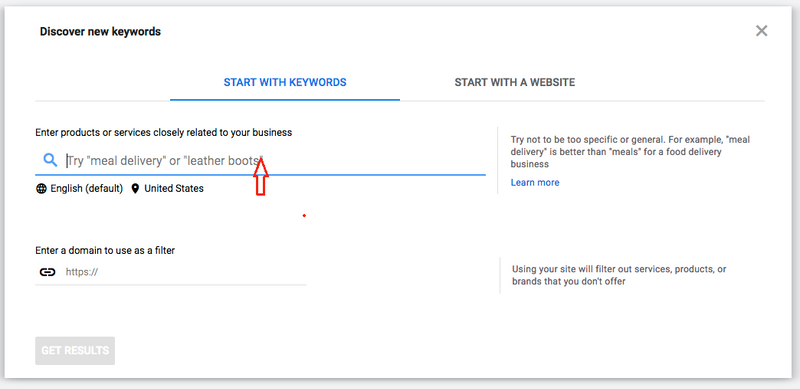 In said section, you can enter words or phrases suggested to the topic of your blog post, article, or ad, to get desired keywords on Google’s internal database in various fields and industries.
