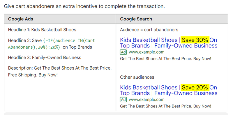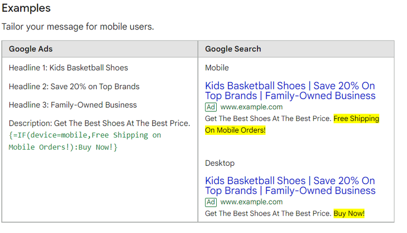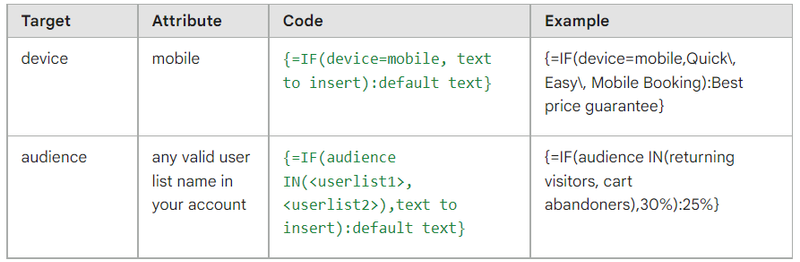This one is something you’ll need to take very seriously, because Google does. While you can’t directly access Google’s user data base, you can make the algorithm that determines what version of your ad gets shown tap into it. By making use of the IF functions, you can get as close to controlling which demographics sees which text as Google will let you. Better discounts to those who previously changed their mind, free shipping for clients near you, or a personalized greating for return visitors – any of that is possible, as long as you follow Google’s Personalized Advertizing policy.