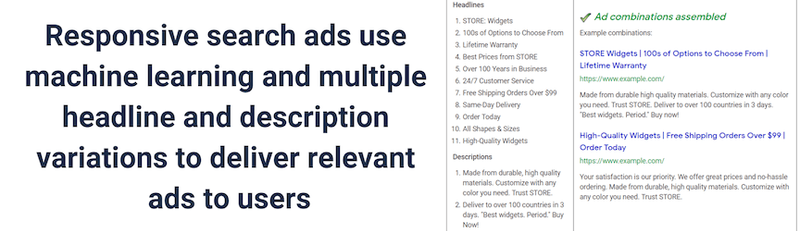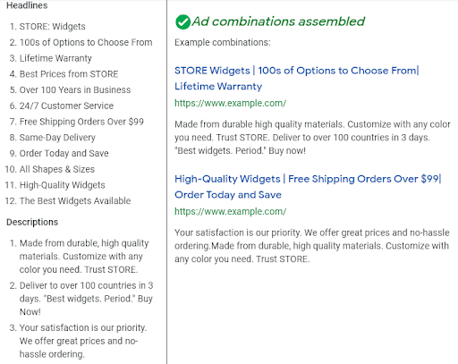 Google will be mixing and matching headlines and descriptions however it pleases, so make sure every possible combination reads well and makes sense.
