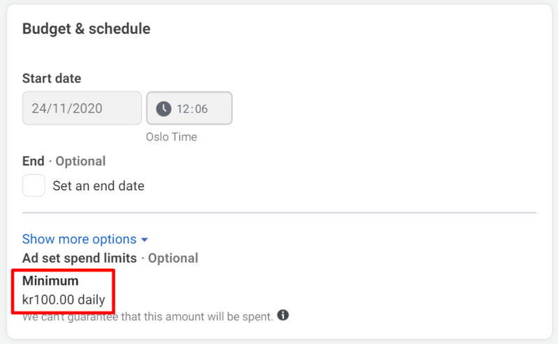 Note: the amount of the budget you define can be chosen as either a daily budget or a lifetime budget. You can schedule the launching of your ads if you need to. CBO works even if your active ad sets have different start and end times. Also, you can set up the ad set spend limit in accordance with your goals.