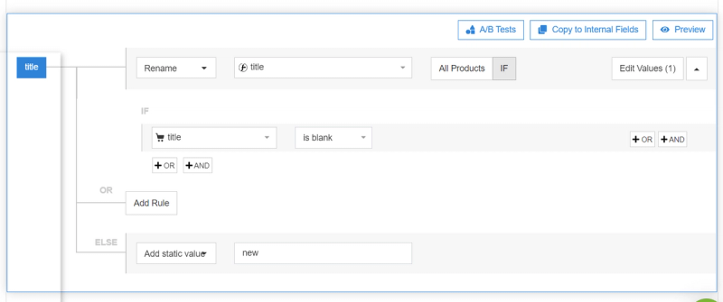 Alternatively, if you have to add more information to the product feed (e.g., if the title looks too short), you can easily supplement it with this rule. This way, you’ll never have an empty field, because you can just set it up based on your needs with the help of a file that contains additional parameters.