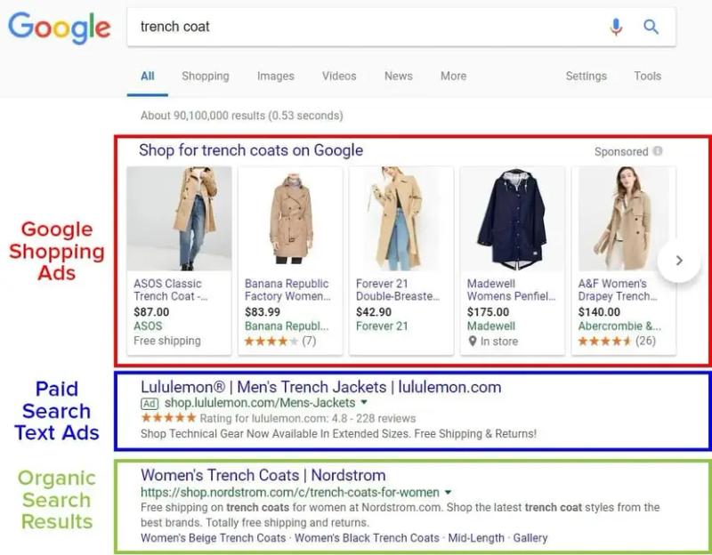 There are shopping adverts on both the main Google search page and the shopping tab. Since you can’t specify keywords for these advertisements, they function differently from standard search ads.