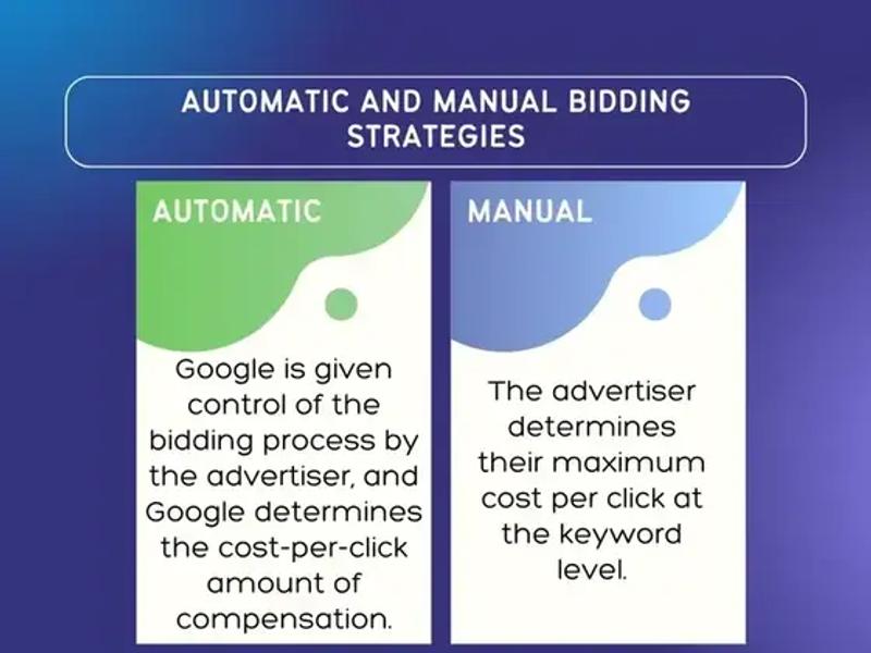 Besides smart bidding strategies, you might come across other terms like “automated bidding” and “manual bidding.” If you don’t know what they mean, we’ve provided more details below, including how they differ from smart bidding strategies.