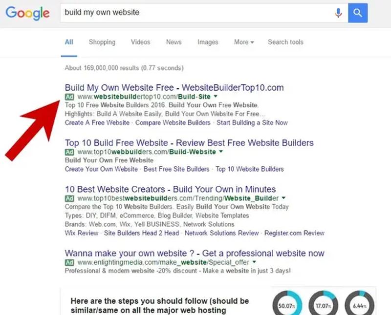 The search ad is the most popular format for Google advertisements. It displays directly above the organic search results for queries that are related to the advertiser’s goods and services; however, Google Ads can also be used to create display ads, shopping ads, YouTube ads, and more.