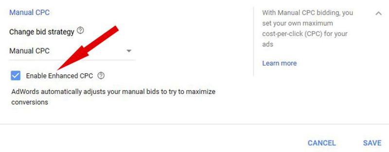 Many marketers might not consider enhanced CPC to be a smart bidding strategy, as it is merely a setting applied to manual bidding. However, Google does consider this a form of smart bidding. When we initiate new accounts and campaigns with manual bidding, we normally enable ECPC.