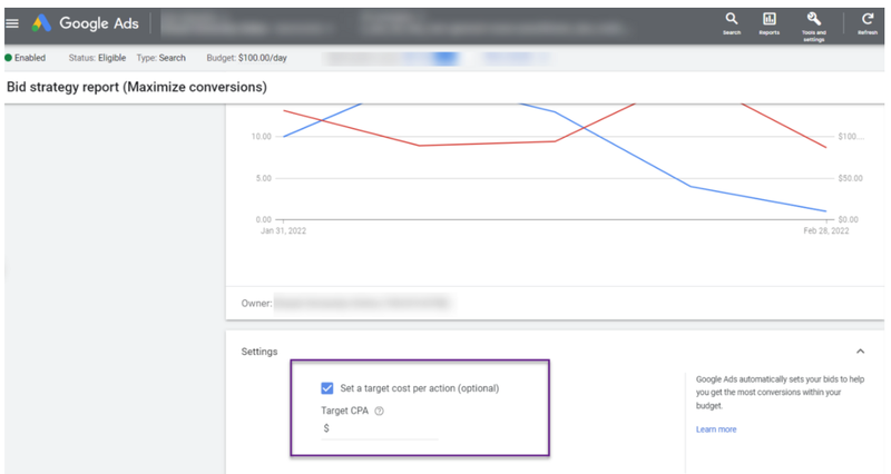 This makes sure that Google looks for ways to outbid our set bids to increase the chances of conversion. Plus, unlike other smart bidding strategies, it appears to perform better when applied to brand-new accounts or campaigns.