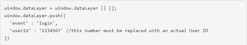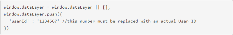 One of the methods we have chosen for the use case below was built on the algorithm where the first developer’s code pushes the User ID to the Data Layer so that we have a Data Layer variable userId.