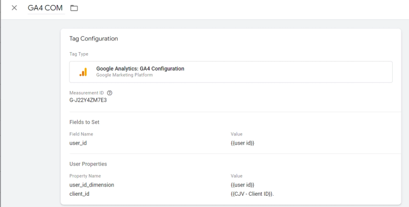 Then, create a Custom Javascript variable (CJV) that extracts this Client ID value from this cookie variable. After that, CJV is sent to GA as a value of Client ID user property with every hit.