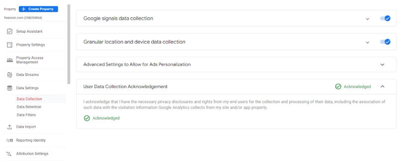 Google Signals is a feature that collects data from users who have turned on Ads Personalization. Because these users are already signed into Google accounts, Google Analytics can utilize their data (in lieu of a website authentication system like the User ID) to users cross device tracking. Google Signals may not be enabled in GA4 unless you consent to User Data Collection Acknowledgement in your Google Analytics settings. In your Privacy Policy, users have to be informed that this method might be used to collect their data across devices.