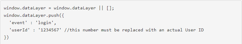 One of the methods we have chosen for the use case below was built on the algorithm where the first developer’s code pushes the User ID to the Data Layer so that we have a Data Layer variable userId.
