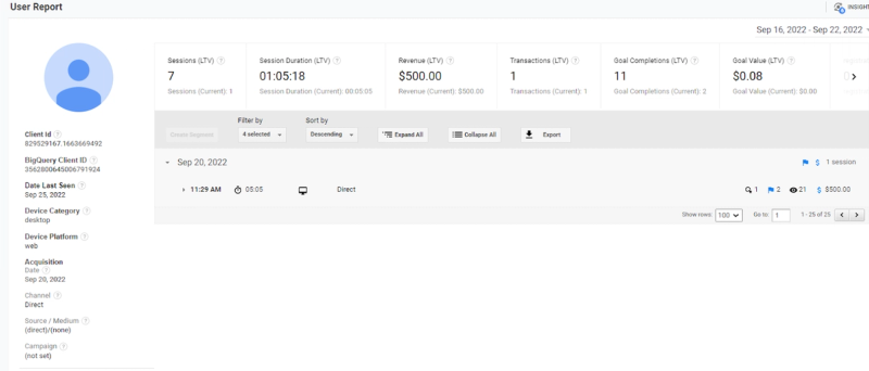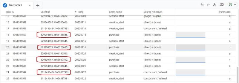 When we compared the data from Universal Analytics during the same time period, we found all these transactions with the same Client IDs. Therefore, they were held by the same User ID account.