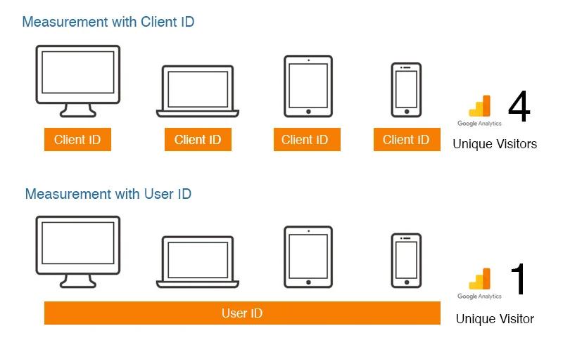 The strict Google privacy policy does not allow the use of personally identifiable information or IP addresses of users to provide insights into the structure or behavior of your audience. However, as a workaround, unique user IDs can be used to learn valuable information about new and returning visitors to your website. Also, this approach helps to resolve cross-device problems with attribution when most purchases are being tracking as coming from direct.