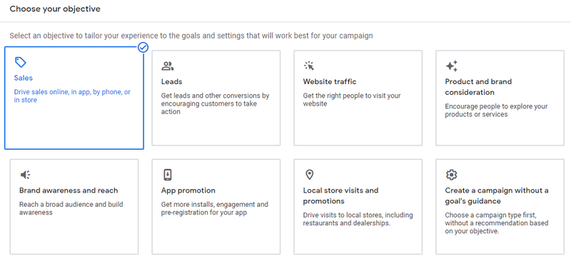 We recommend selecting Sales on this step to drive conversions.